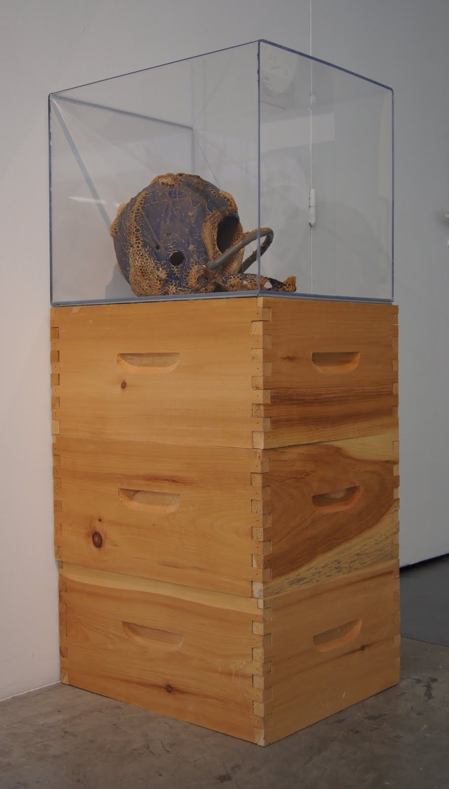 Aganetha Dyck collabore avec des abeilles en plaçant des objets directement dans la ruche, les laissant transformer de choses très simple avec une couche de cire.
